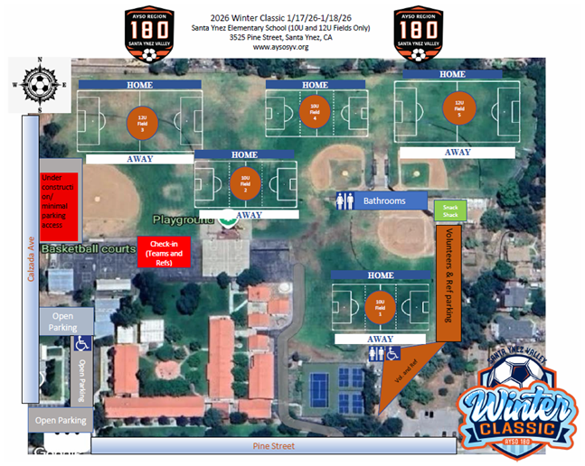 The annual AYSO Santa Ynez Winter Classic will be held on January 17 & 18, 2026 in the beautiful Santa Ynez Valley, CA.
